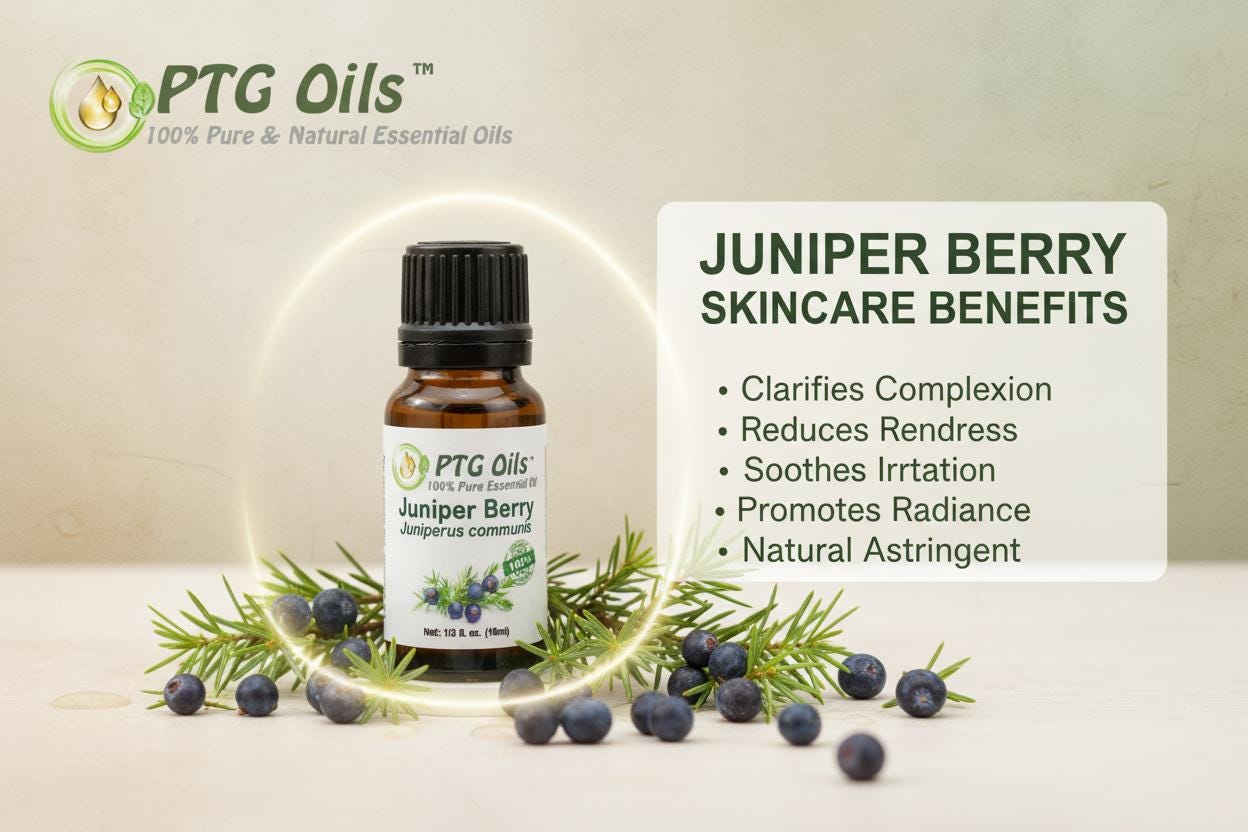 PTG Oils Juniper Berry Essential Oil has a fresh clean woody aroma with lightly sweet berry and soft pine like undertones that create a crisp balanced and outdoors inspired atmosphere. Steam distilled from the berries of Juniperus communis grown in Serbia this oil is appreciated for its clear forest character and versatility in everyday aromatherapy and home fragrance use.
