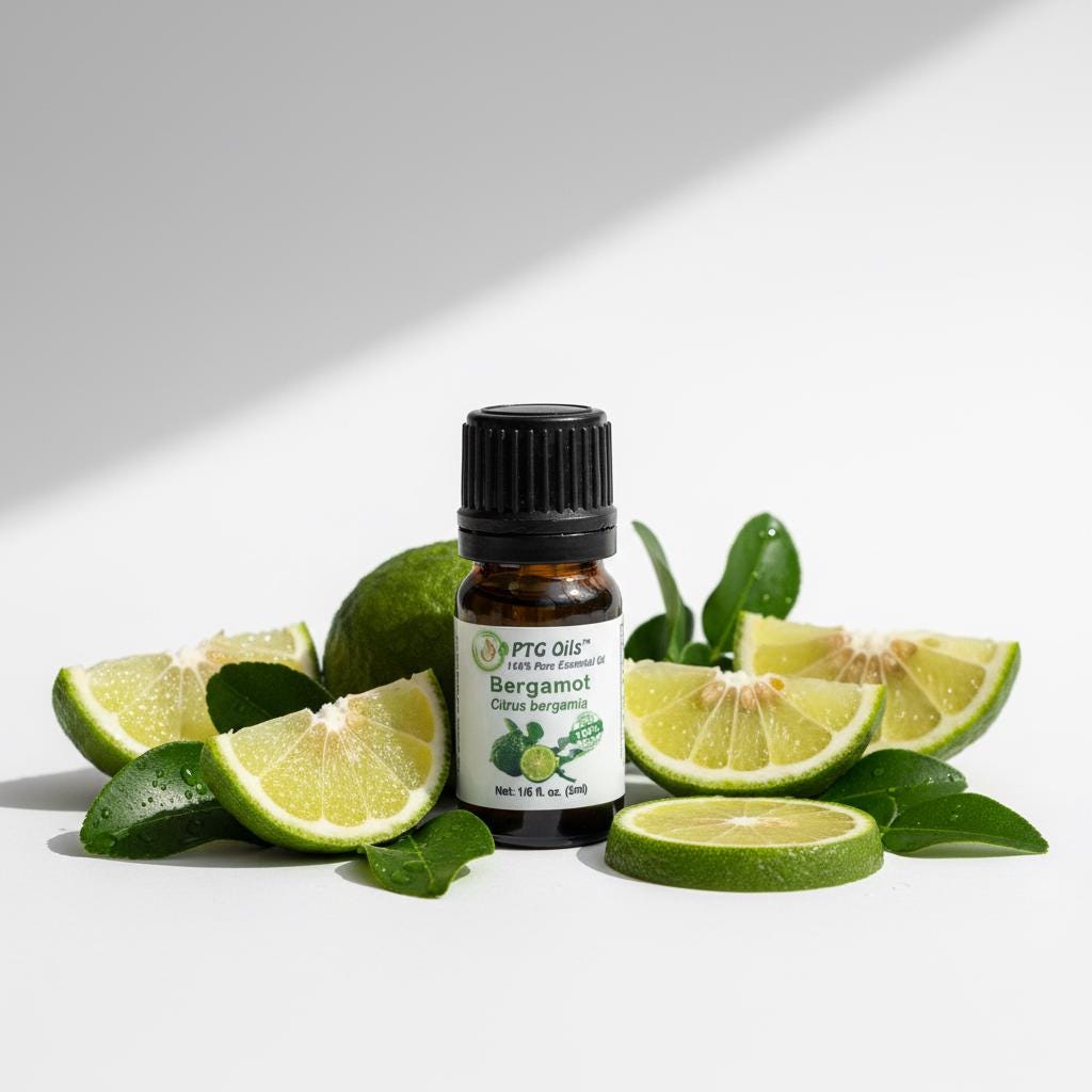 PTG Oils Bergamot Essential Oil features a bright fresh citrus aroma with soft sweet and slightly floral undertones that create an uplifting and clean atmosphere. Cold pressed from the peel of Citrus bergamia grown in Italy this oil is a favorite for aromatherapy diffusers home fragrance and creative projects.