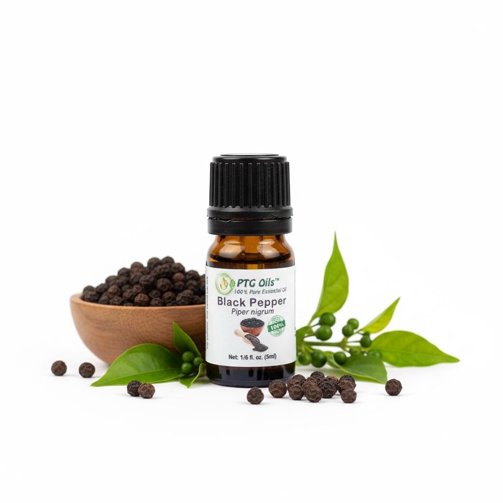PTG Oils Black Pepper Essential Oil has a warm spicy and slightly woody aroma that adds depth and richness to any space. Steam distilled from the dried peppercorns of Piper nigrum grown in India this oil is well known for its bold scent and versatility in aromatherapy home fragrance and creative projects.