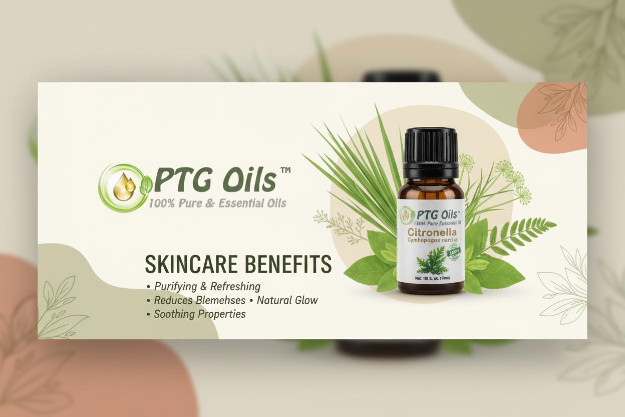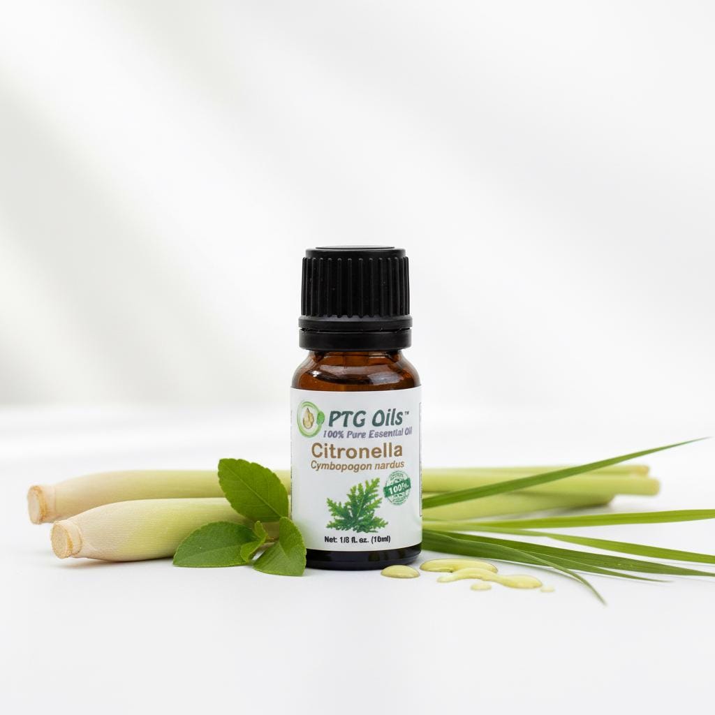 PTG Oils Citronella Essential Oil has a fresh crisp lemony aroma with grassy green undertones that create a clean bright and energizing atmosphere. Steam distilled from the leaves of Cymbopogon nardus grown in India this oil is appreciated for its bold citrus grass character and versatility in everyday aromatherapy and home fragrance use.