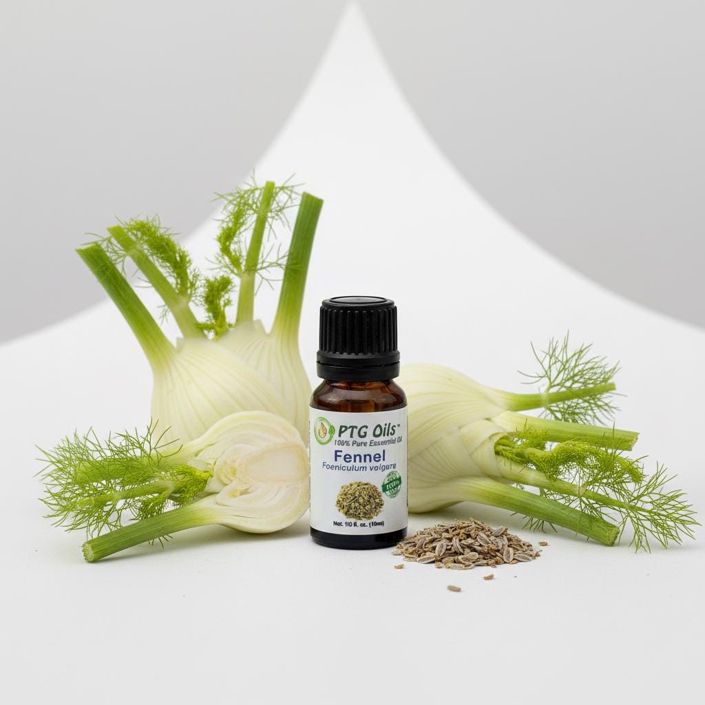 PTG Oils Fennel Essential Oil has a sweet warm herbal aroma with soft licorice like and lightly spicy undertones that create a comforting and gently uplifting atmosphere. Steam distilled from the seeds of Foeniculum vulgare grown in Hungary this oil is valued for its smooth aromatic depth and versatility in everyday aromatherapy and home fragrance use.