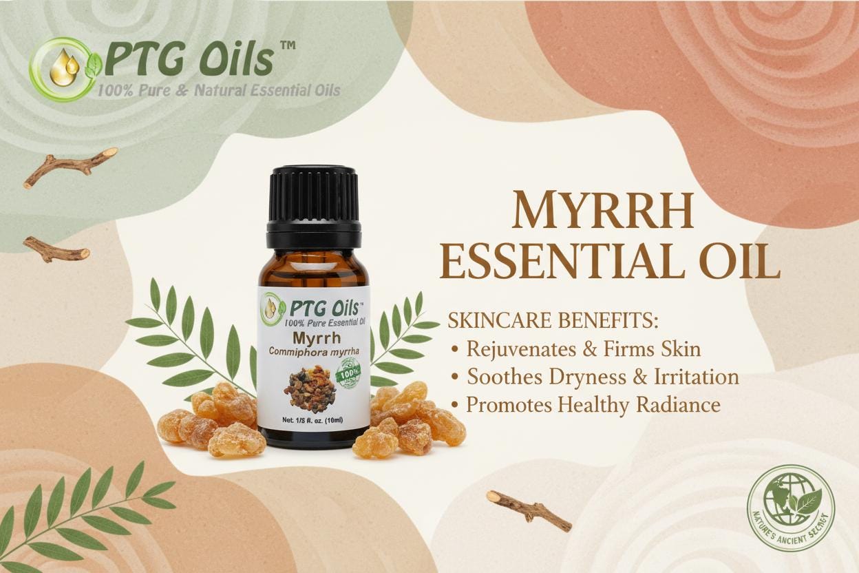 PTG Oils Myrrh Essential Oil has a deep rich resinous aroma with warm earthy and slightly smoky undertones that create a grounding and timeless atmosphere. Steam distilled from the resin of Commiphora myrrha sourced from Ethiopia this oil is treasured for its ancient aromatic character and depth in everyday aromatherapy and home fragrance use.