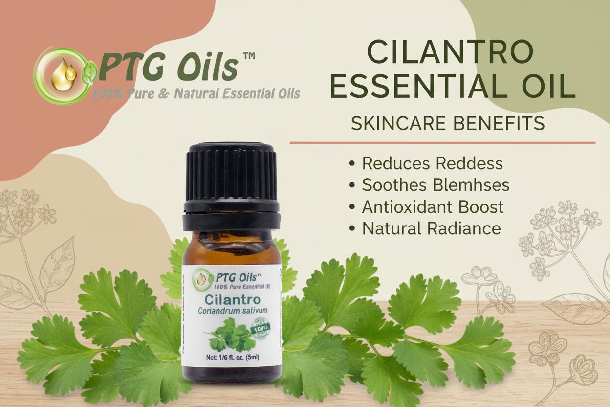 PTG Oils Cilantro Essential Oil has a fresh green herbaceous aroma with soft citrus like and slightly peppery undertones that bring a clean vibrant scent to any space. Steam distilled from the leaves of Coriandrum sativum grown in the United States this oil is appreciated for its bright aromatic profile and versatility in everyday aromatherapy and creative use.
