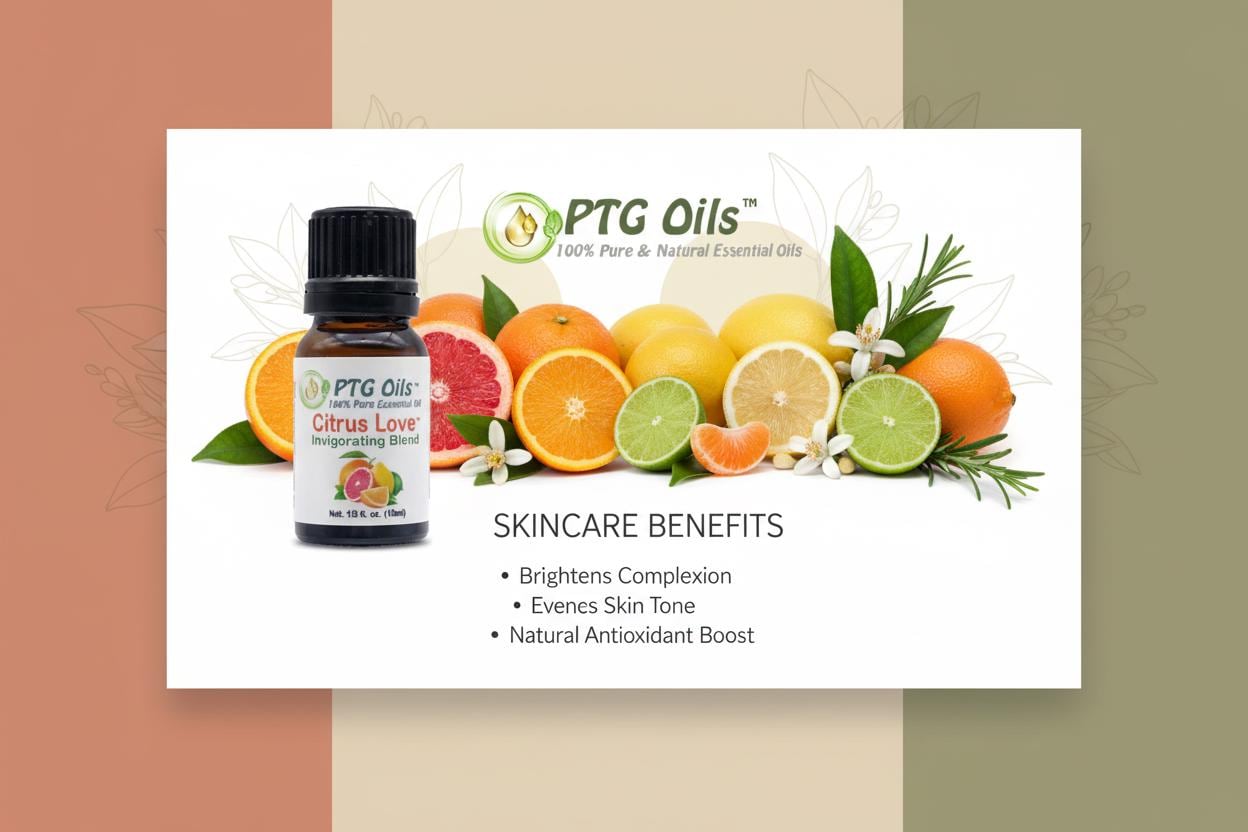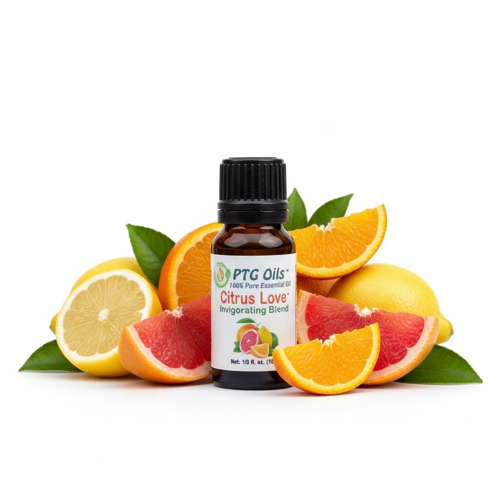 PTG Oils Citrus Love Essential Oil Blend is a bright joyful citrus forward blend with sweet juicy and lightly creamy undertones that instantly create a warm happy and uplifting atmosphere. This vibrant blend combines bergamot peel clementine peel wild orange peel lemon peel grapefruit peel mandarin peel and tangerine peel essential oils with a soft touch of vanilla absolute for smooth sweetness and depth.