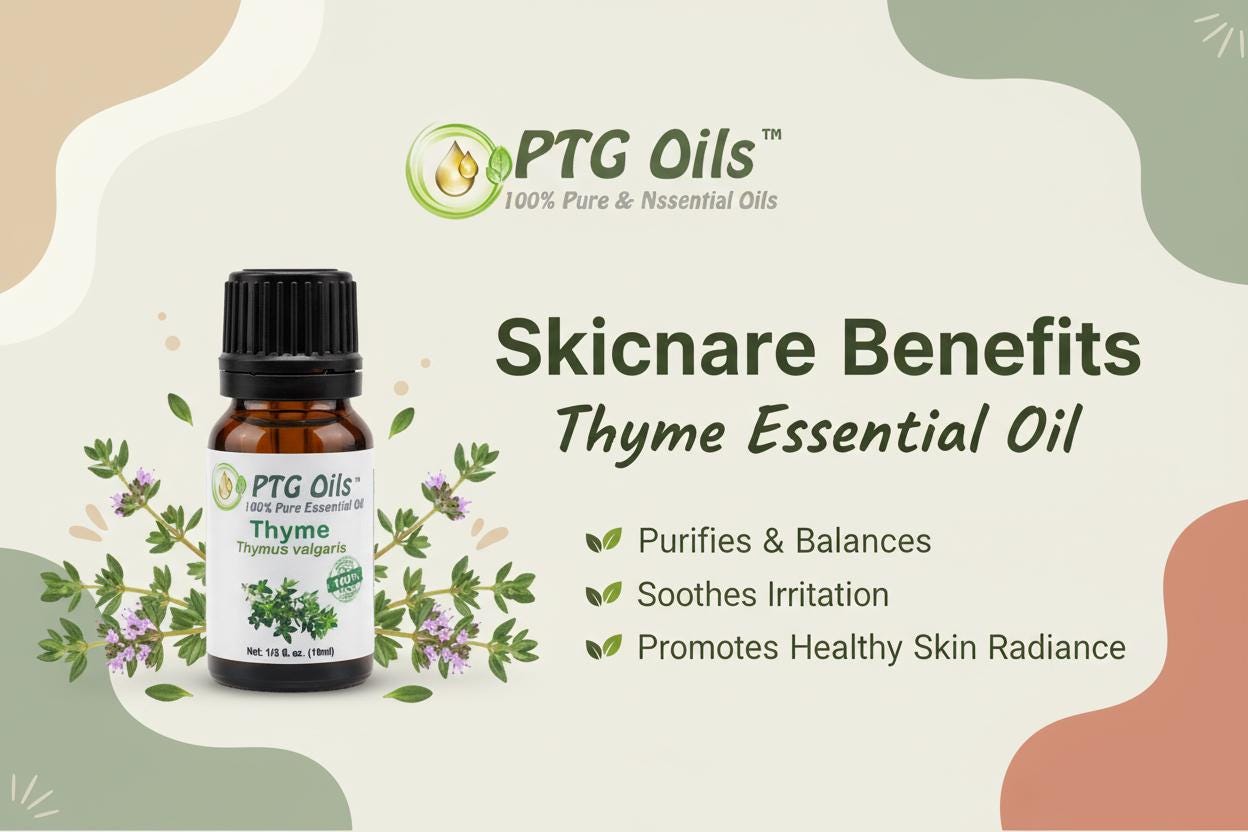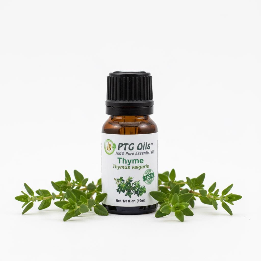 PTG Oils Thyme Essential Oil has a warm strong herbal aroma with earthy green and lightly spicy undertones that add bold character to aromatic blends. Steam distilled from the leaves and flowering tops of Thymus vulgaris grown in the United States this oil is appreciated for its classic thyme scent and robust aromatic presence in everyday aromatherapy and home fragrance use.