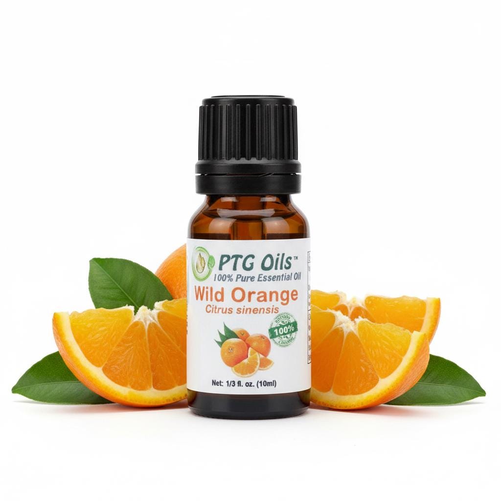 PTG Oils Wild Orange Essential Oil has a bright sweet citrus aroma with juicy fresh and lightly warm undertones that create a cheerful and uplifting atmosphere. Cold pressed from the peel of Citrus sinensis grown in Belize this oil is loved for its vibrant wild orange character and smooth approachable scent in everyday aromatherapy and home fragrance use.