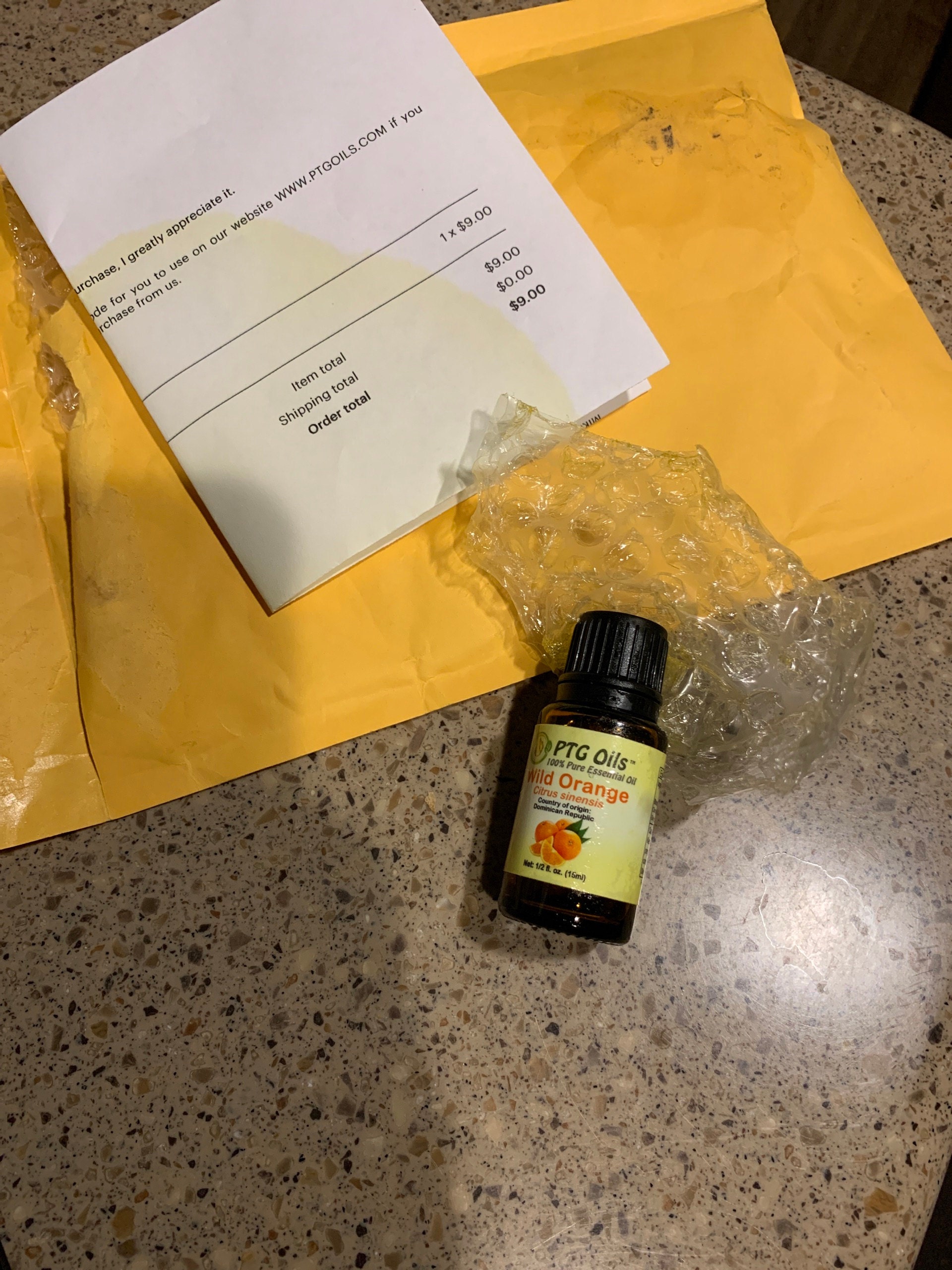 Came sooner than expected and very fragrant orange oil! You are my go to for oils now!