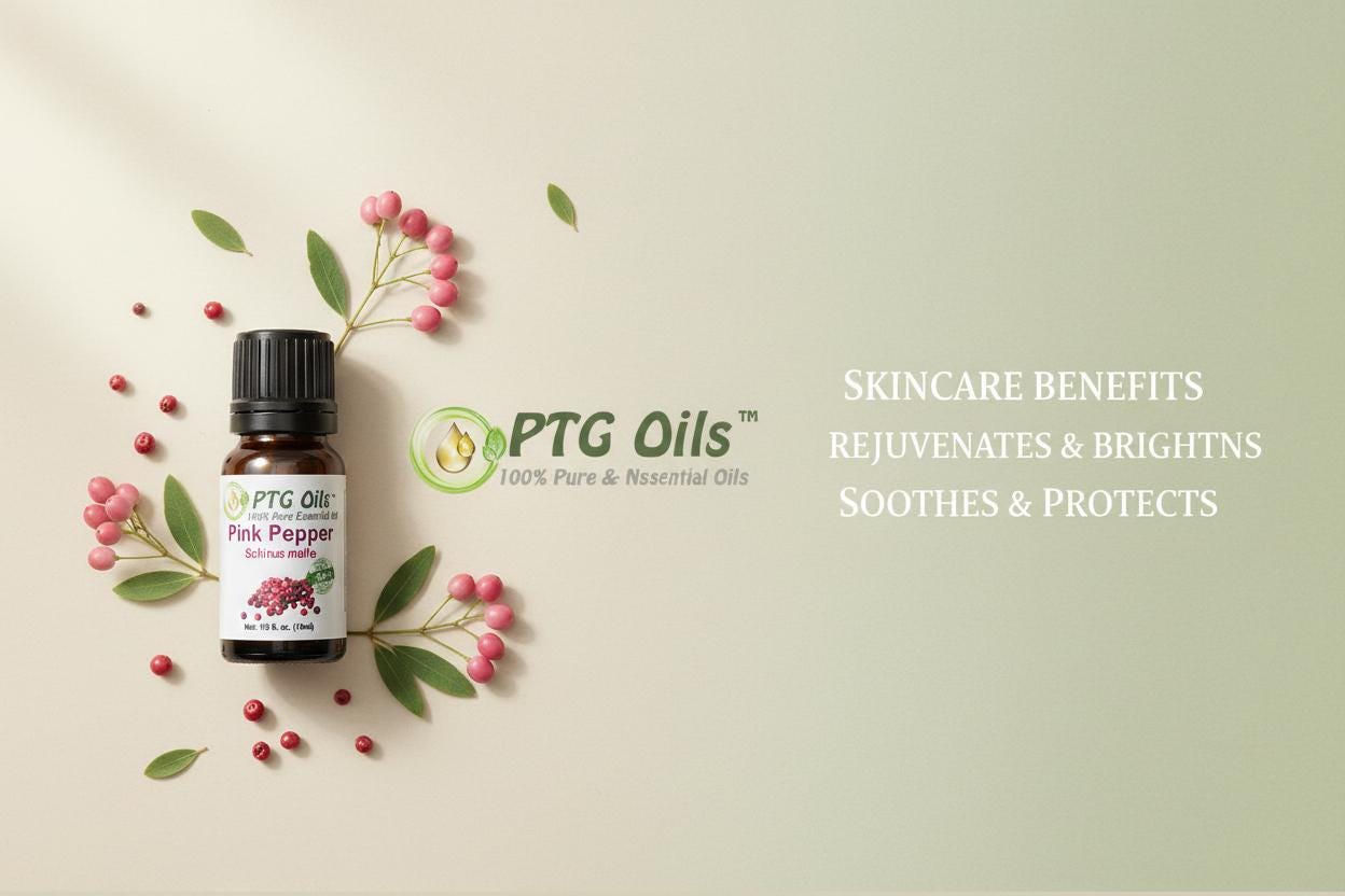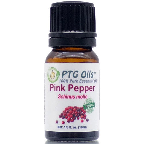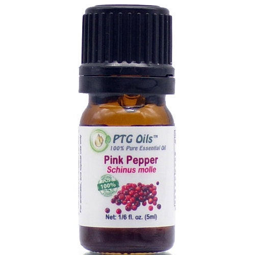 100% Pure Pink Pepper Essential Oil. Unlike traditional Black pepper essential oil, Pink Pepper oil has a sweeter note to its fragrance. It can be used interchangeably in most aromatherapy and perfumery blends. The pink peppercorn, while similar in appearance to black peppercorn apart from the color, is closely related to cashews. Limonene and α-Phellandrene, two of the main chemical components of Pink Pepper essential oil, may be calming to the nervous system.